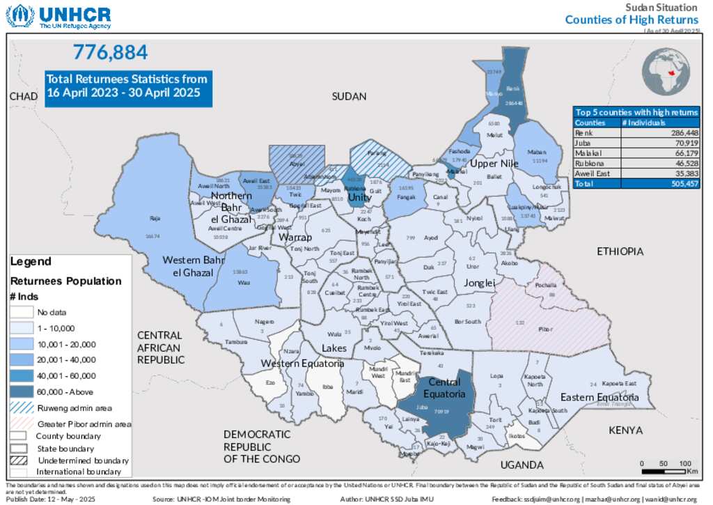 Sudan Situation - Returnees County Level Heat Map - 30 April 2025
