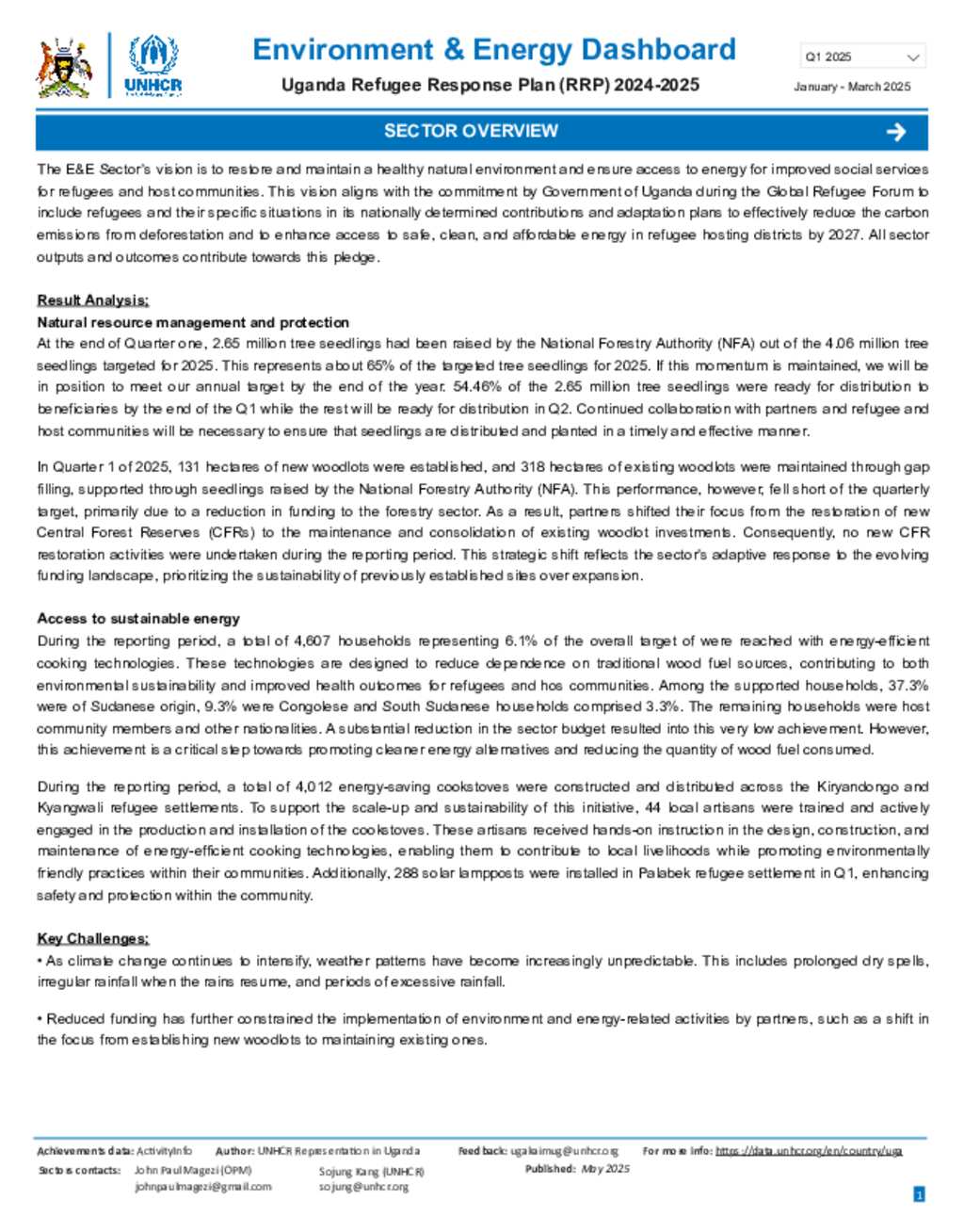 Uganda Refugee Response: Environment and Energy dashboard Quarter 1 2025
