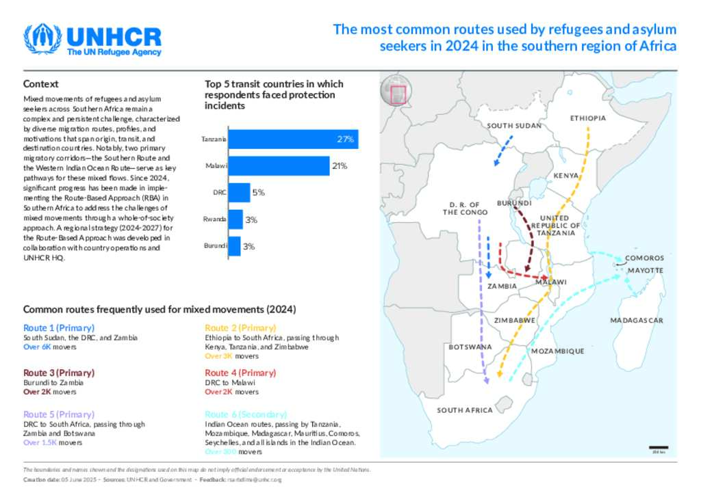 Most common routes used by refugees and asylum-seekers in 2024 in Southern Africa