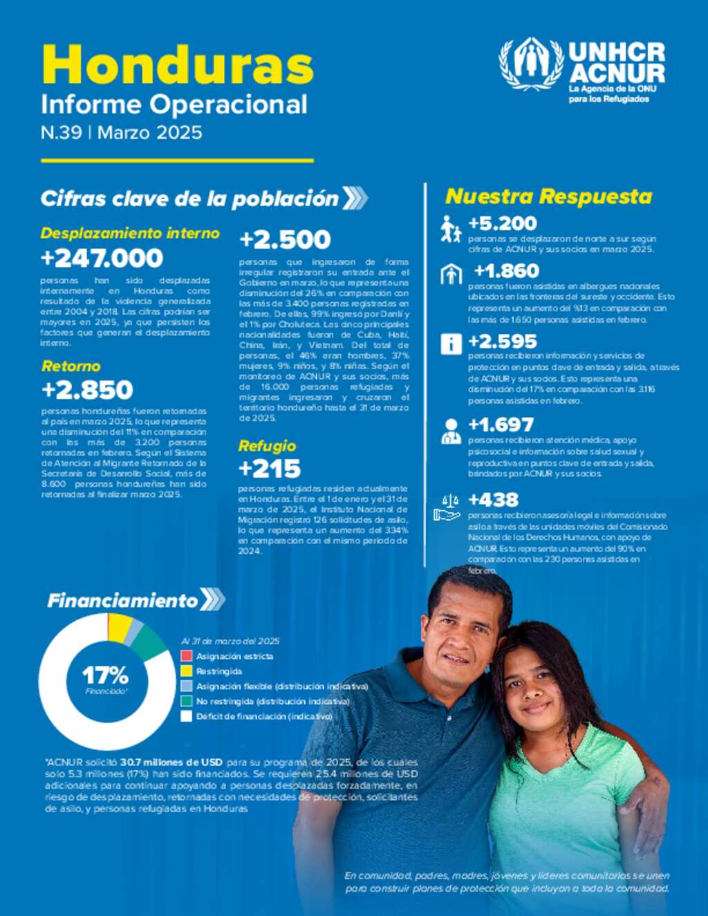 Reporte operacional de la oficina de ACNUR en Honduras que corresponde a marzo de 2025.