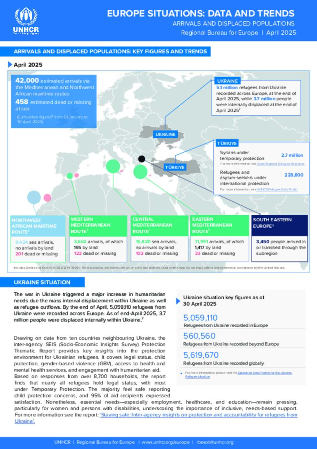 EUROPE SITUATIONS: DATA AND TRENDS - ARRIVALS AND DISPLACED POPULATIONS - APRIL 2025