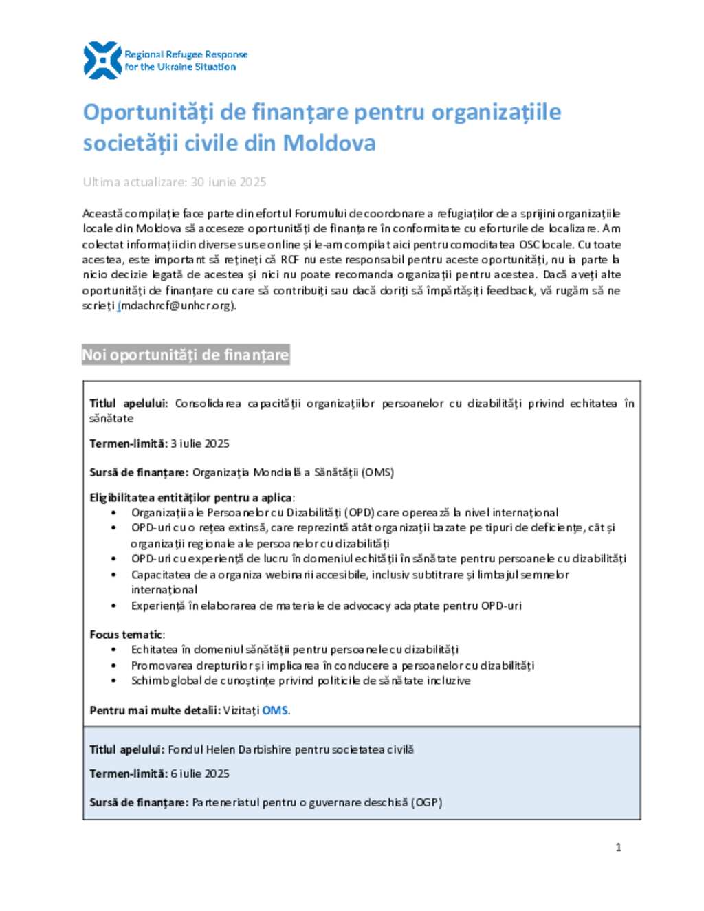 Ukraine Situation - Moldova: Funding Opportunities for Local CSOs in Moldova (June 2025) (RO)