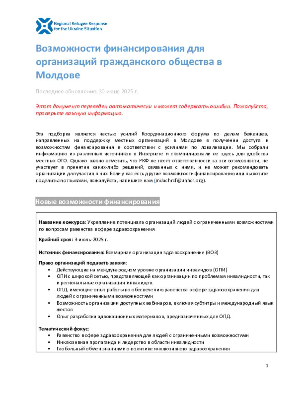 Ukraine Situation - Moldova: Funding Opportunities for Local CSOs in Moldova (June 2025) (RU)