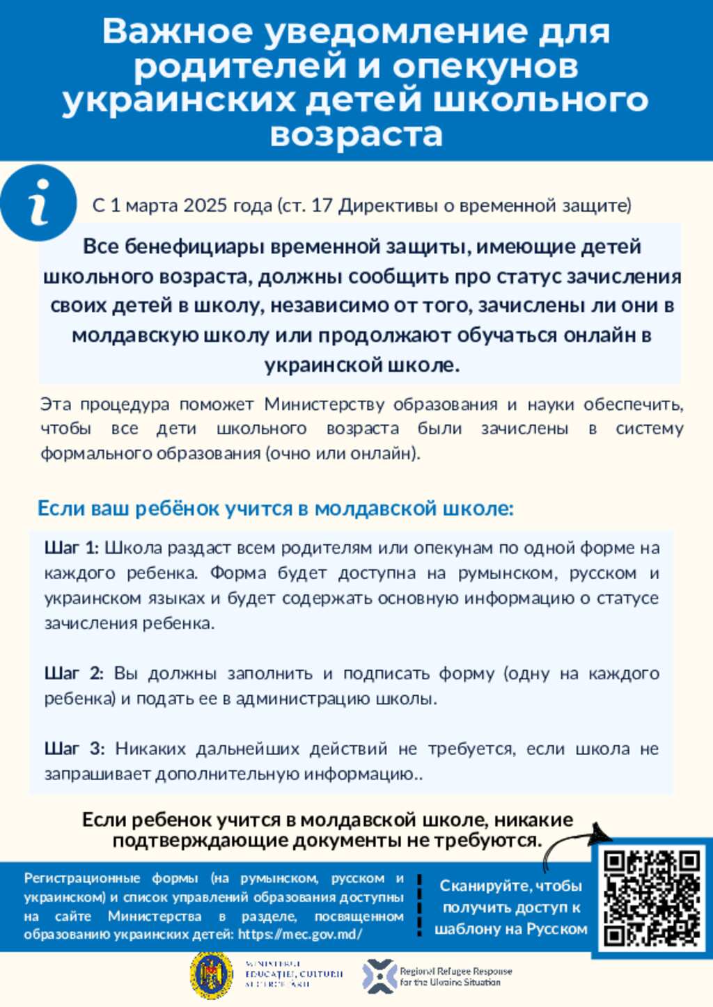 Ukraine Situation - Moldova: Refugee Education Working Group - Information for parents on recording enrolment status (June 2025) (RU)