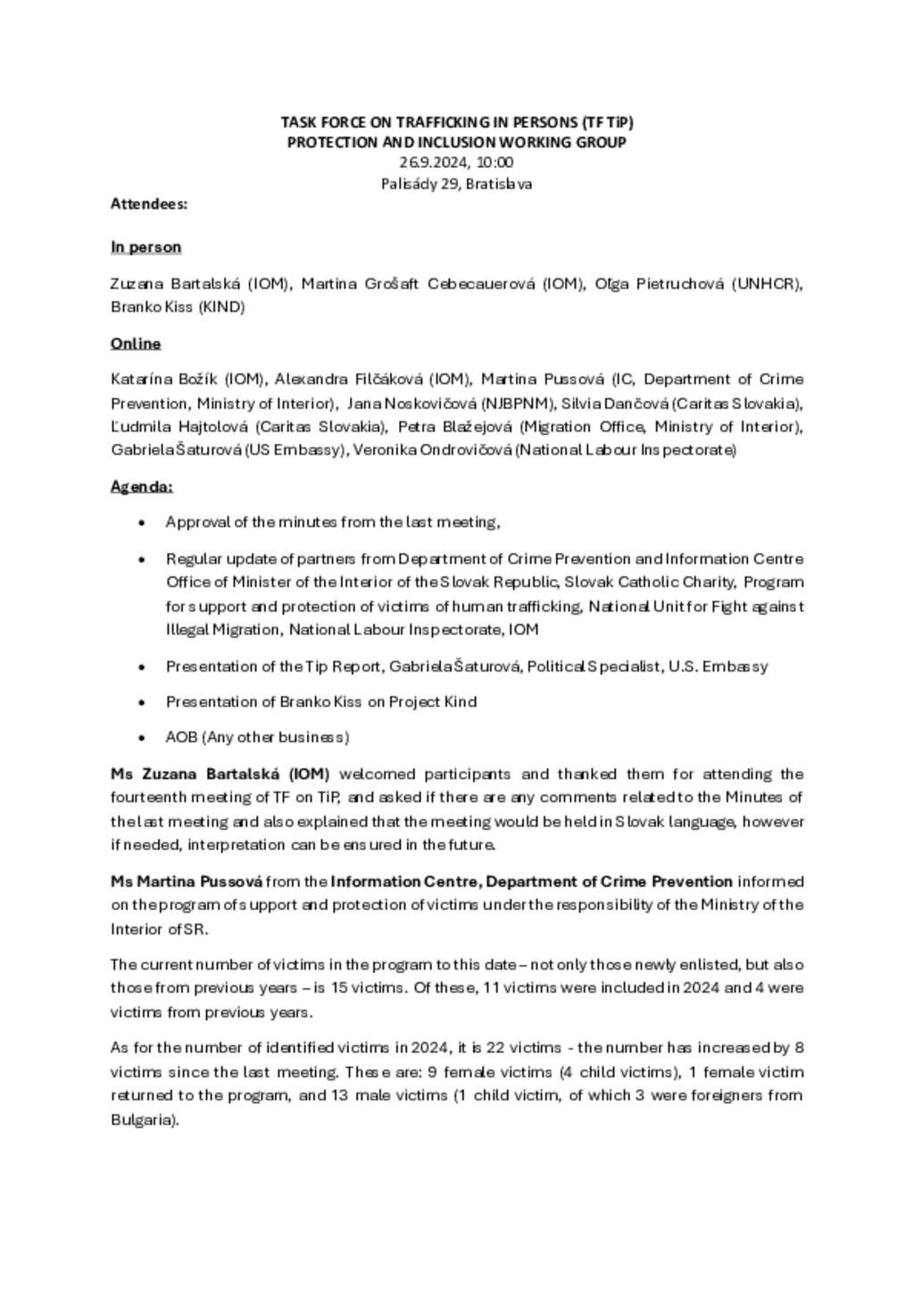 Slovakia: Meeting minutes - Task Force on Trafficking in persons - 26 September 2024