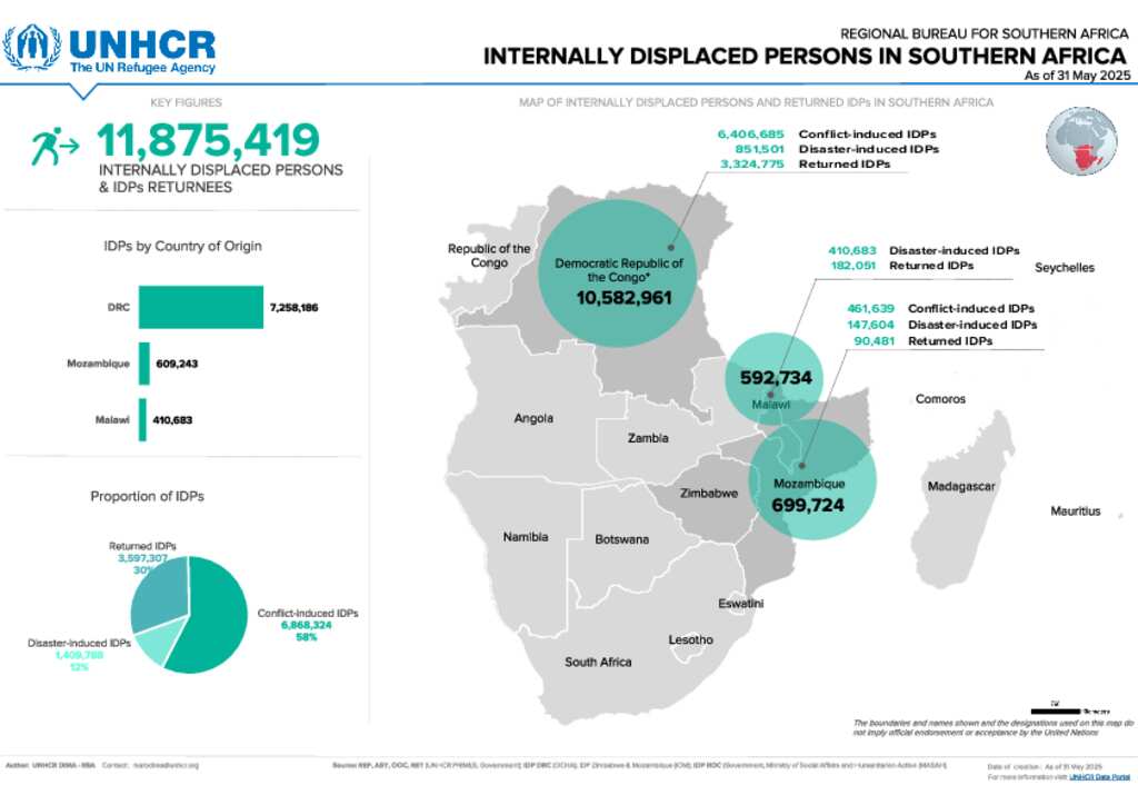 Internally displaced persons (IDPs) in the Southern Africa Region - May 2025