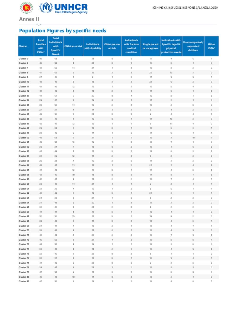 Joint Government of Bangladesh - SPN breakdown Bhasan Char as of June 2025