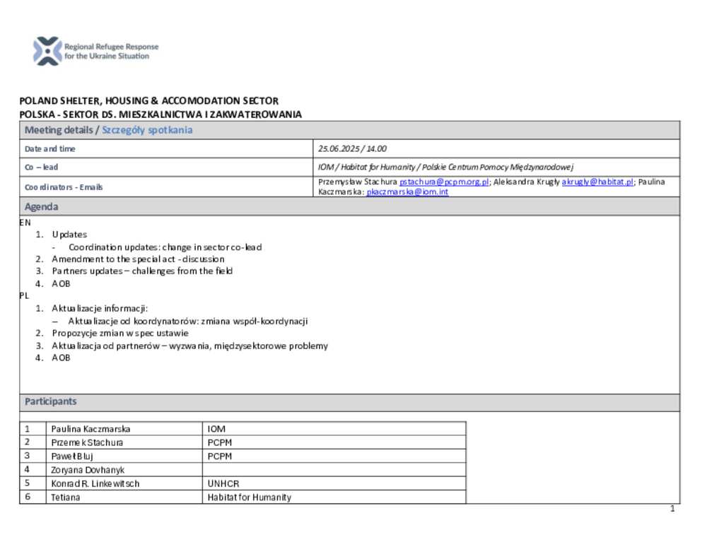 Poland: Shelter, Housing and Accommodation Sector Meeting Minutes (25 June 2025)