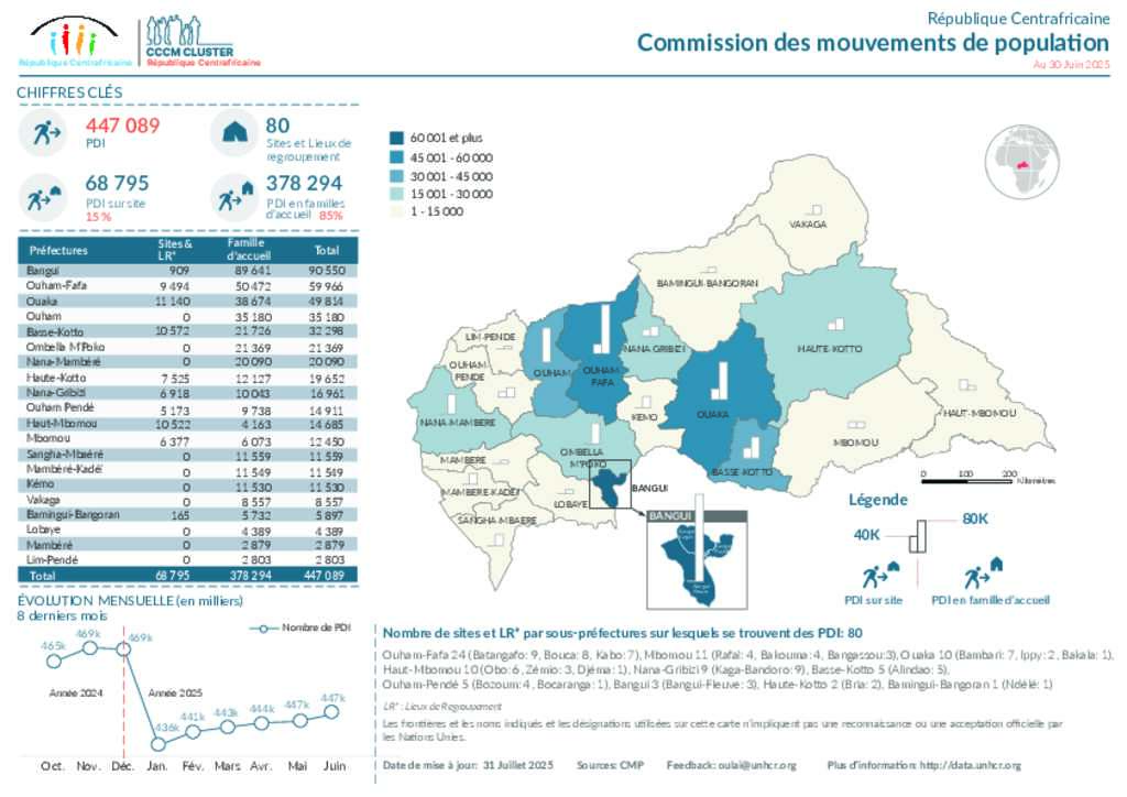 La Commission Mouvement de Populations (CMP) est un mécanisme inter-organisationnel dont l’objectif est de fournir des données chiffrées et les tendances des déplacements de la population en RCA sur une base mensuelle.