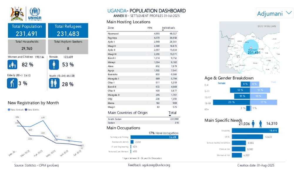 Uganda - Refugee Statistics July 2025 - Settlement Profiles