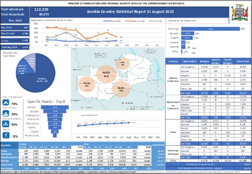 UNHCR Zambia Countrywide Statistics, August 2025