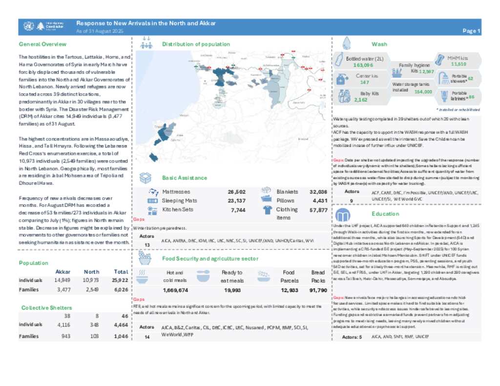 Lebanon - Response to New Arrivals in the North and Akkar - 31 August 2025
