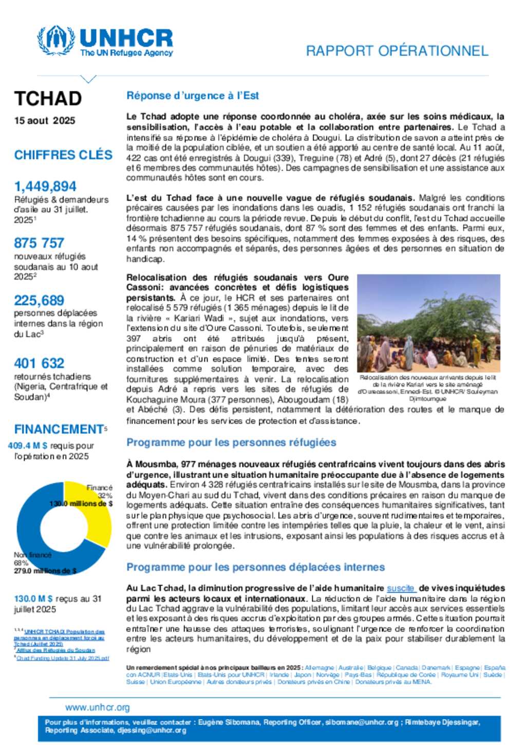 HCR TCHAD | Rapport opérationnel hebdomadaire du 15 aout 2025