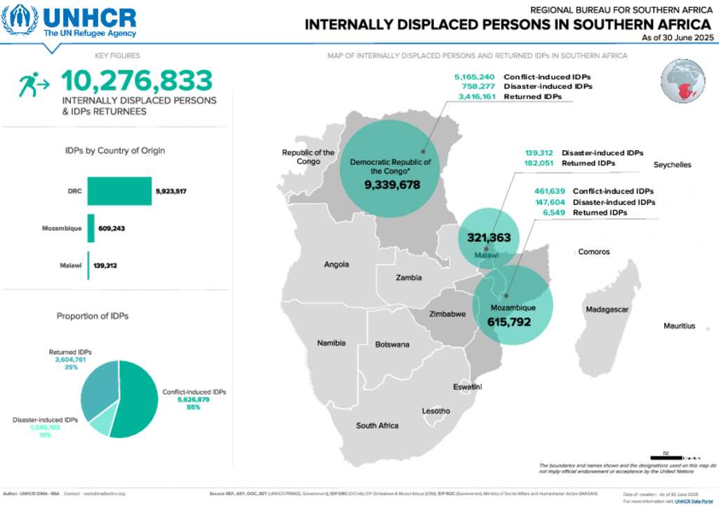 Internally displaced persons (IDPs) in the Southern Africa Region - June 2025