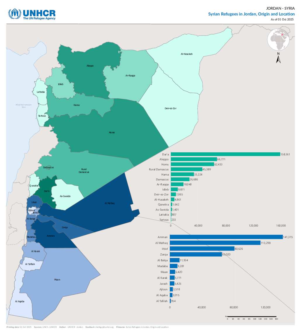 Syrian Refugees in Jordan , Origin and Location - 30 September 2025