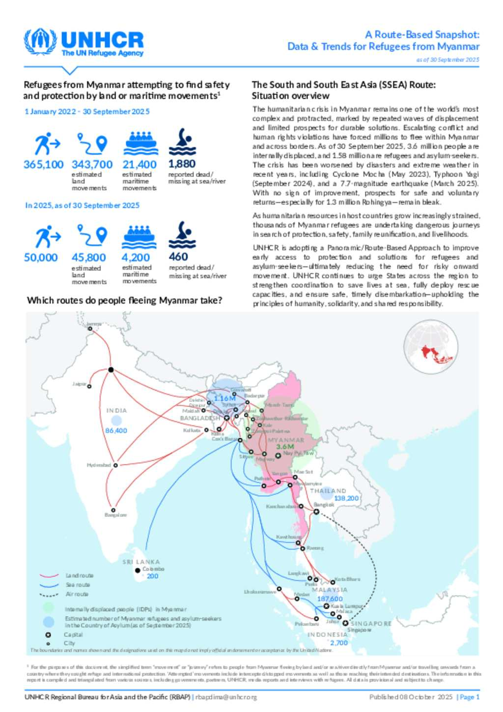 A Route-Based Snapshot: Data & Trends for Refugees from Myanmar, as of end-September 2025