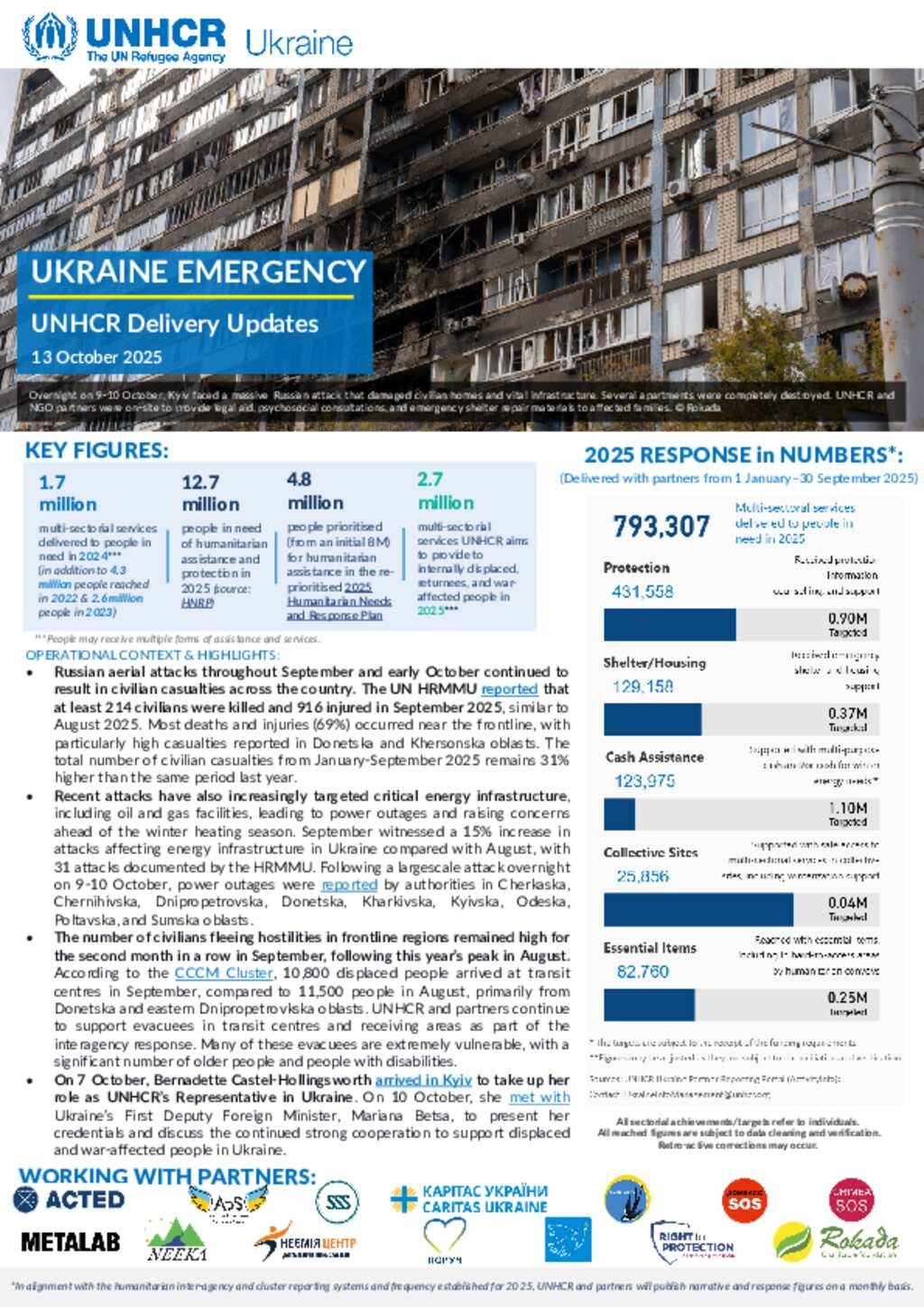 UNHCR Ukraine Delivery Updates - 13 October 2025