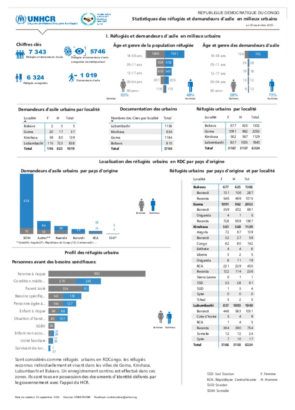 Statistiques des réfugiés et des demandeurs d'asile en RDC au 30 septembre 2025