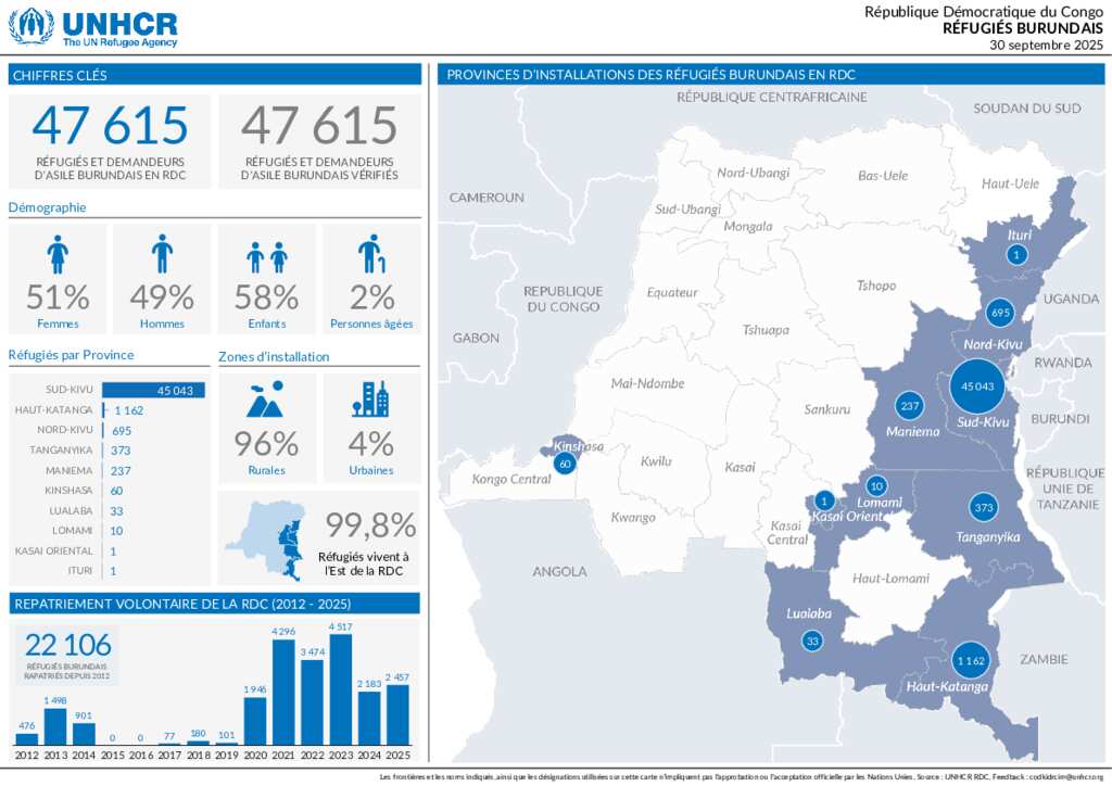 Situation des réfugiés burundais en RDC au 30 septembre 2025