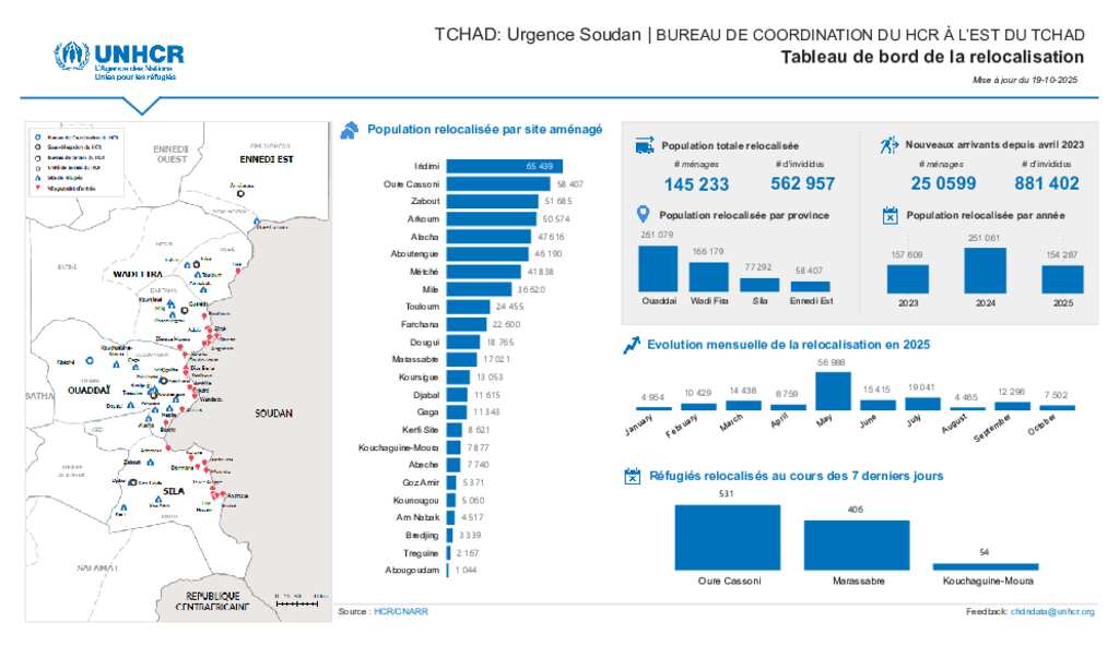 UNHCR TCHAD| Tableau de bord de la relocalisation(19 octobre 2025)