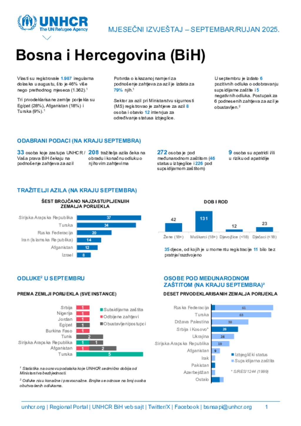 UNHCR Bosnia and Herzegovina monthly update - September 2025 (B/C/S version)