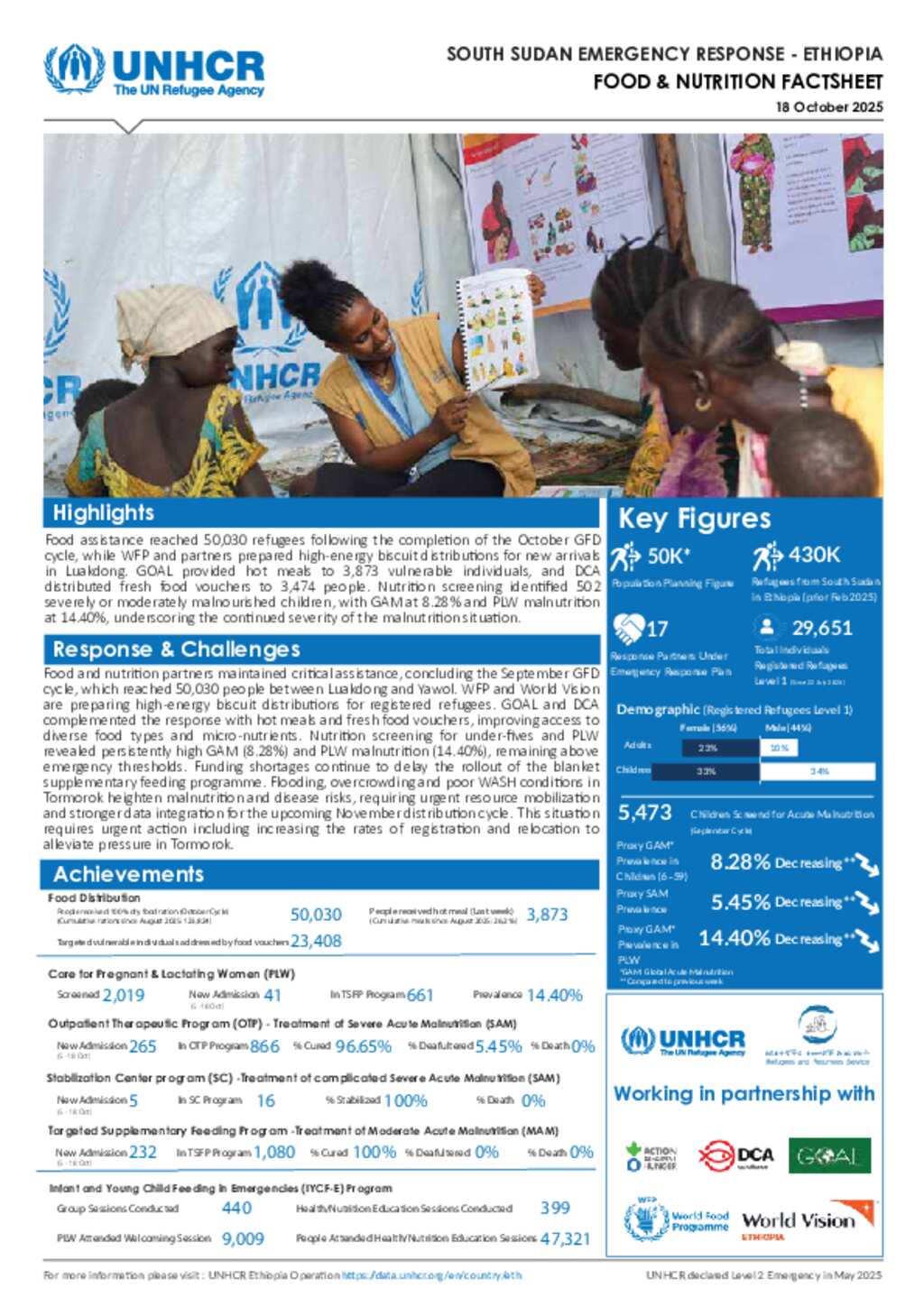 UNHCR Ethiopia | Thematic Factsheet - Food & Nutrition | 18 October 2025
