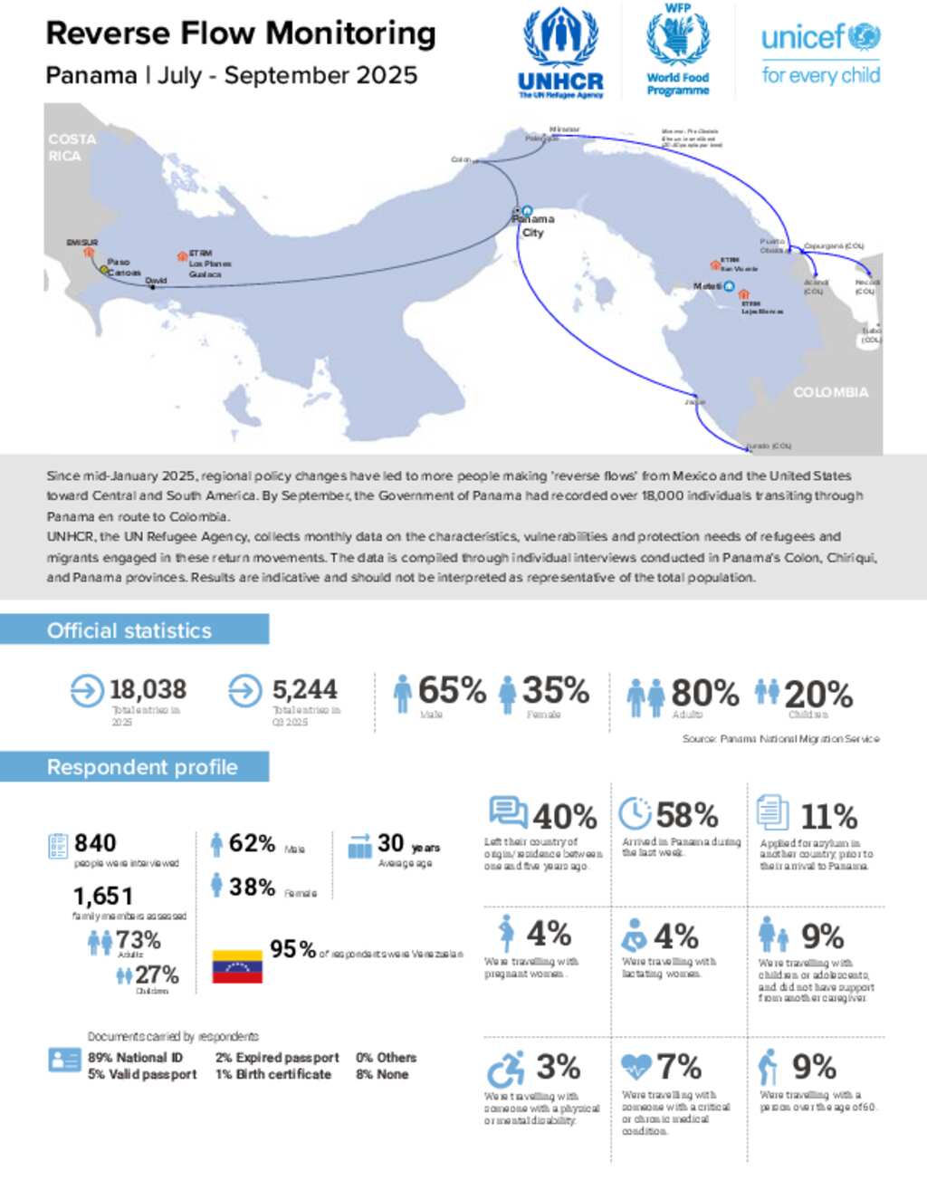Main findings of the monthly reverse flow monitoring conducted by UNHCR in Chiriqui, Colon, and Panama provinces, Panama