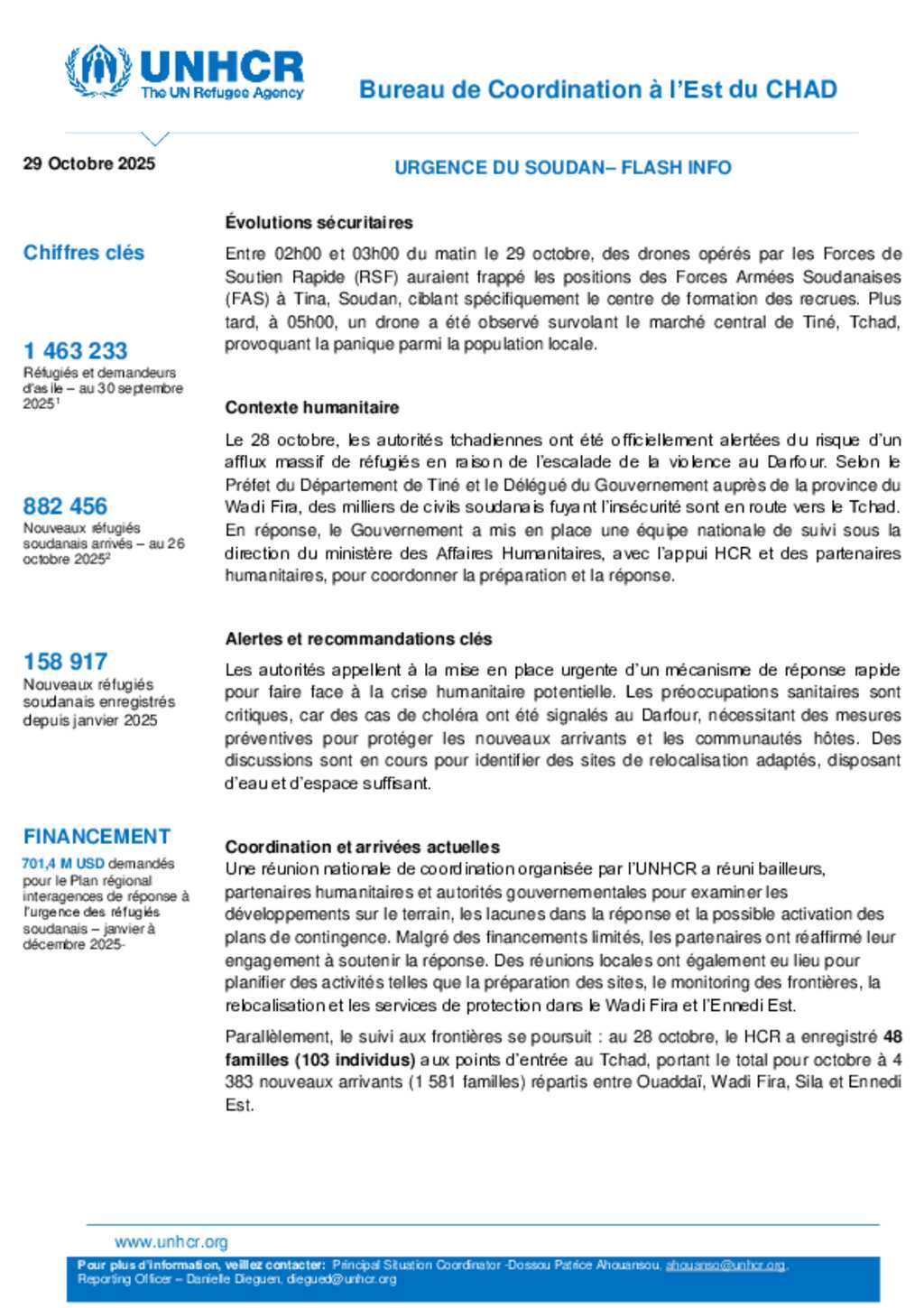 Flash Update #20 Nouvel afflux de réfugiés soudanais au Tchad