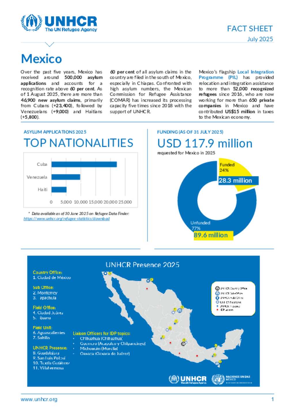 UNHCR Mexico Operation Fact Sheet - Jul 2025