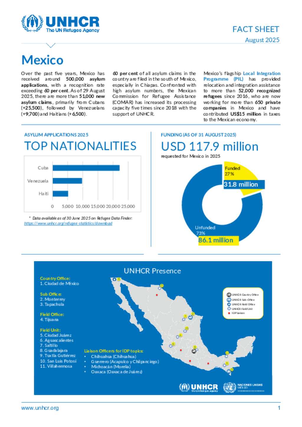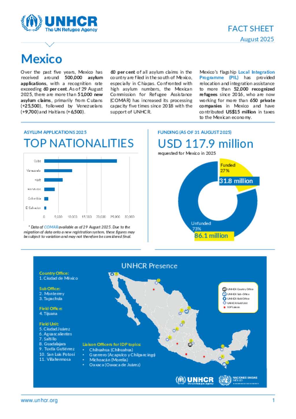 UNHCR Mexico Operation Fact Sheet - Aug 2025