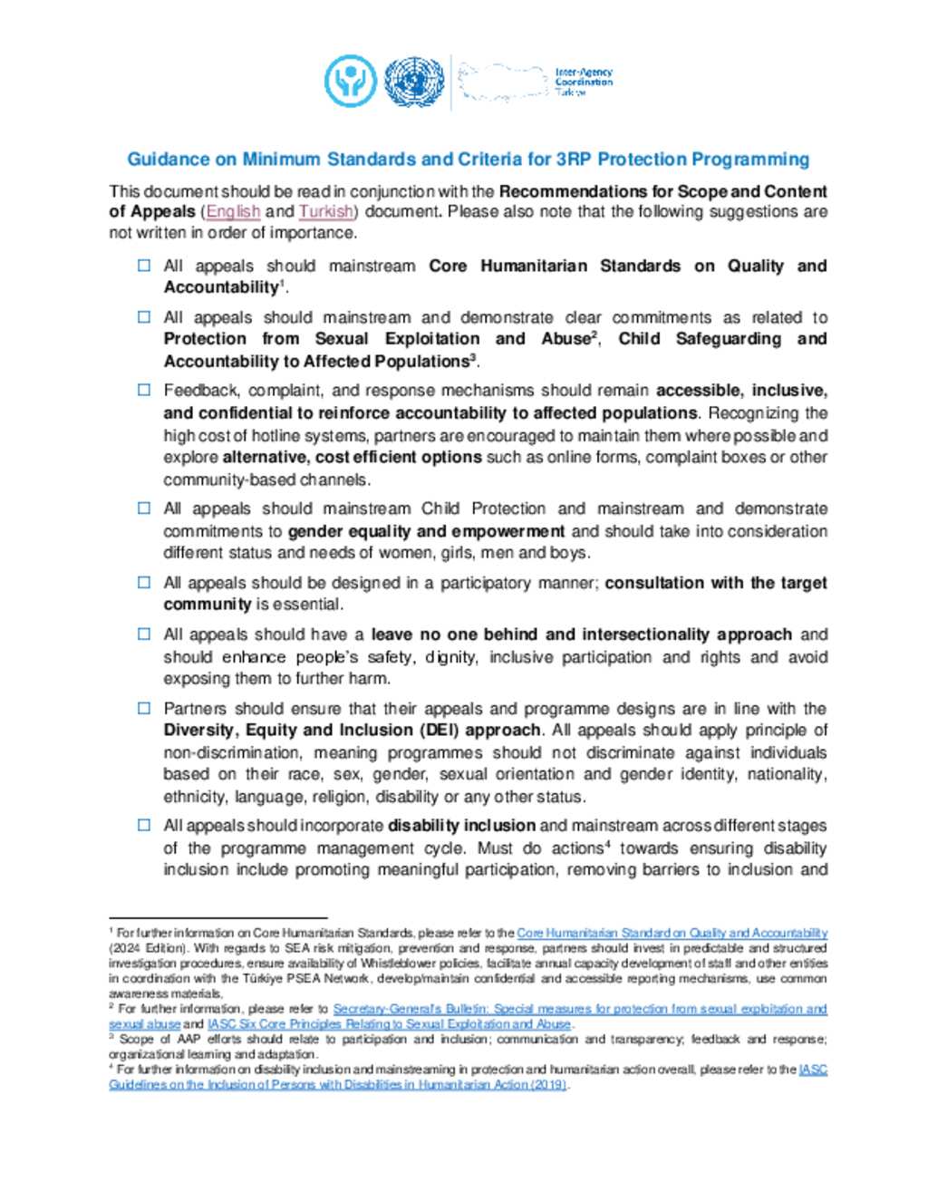 Türkiye: Guidance on Minimum Standards and Criteria for 3RP Protection Programming