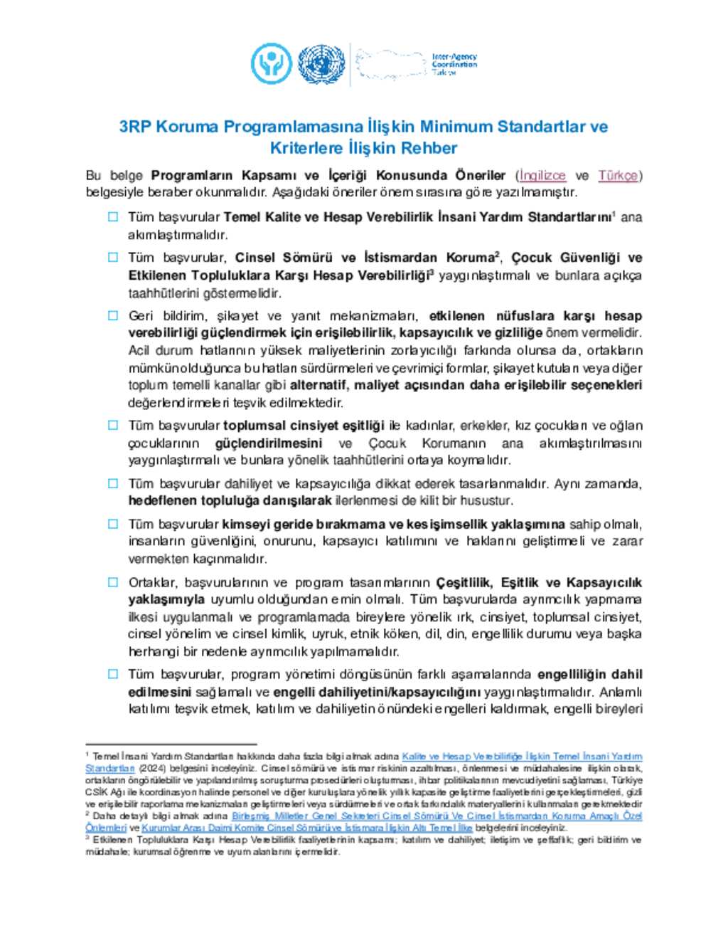 Türkiye: 3RP Koruma Programlamasına İlişkin Minimum Standartlar ve Kriterlere İlişkin Rehber