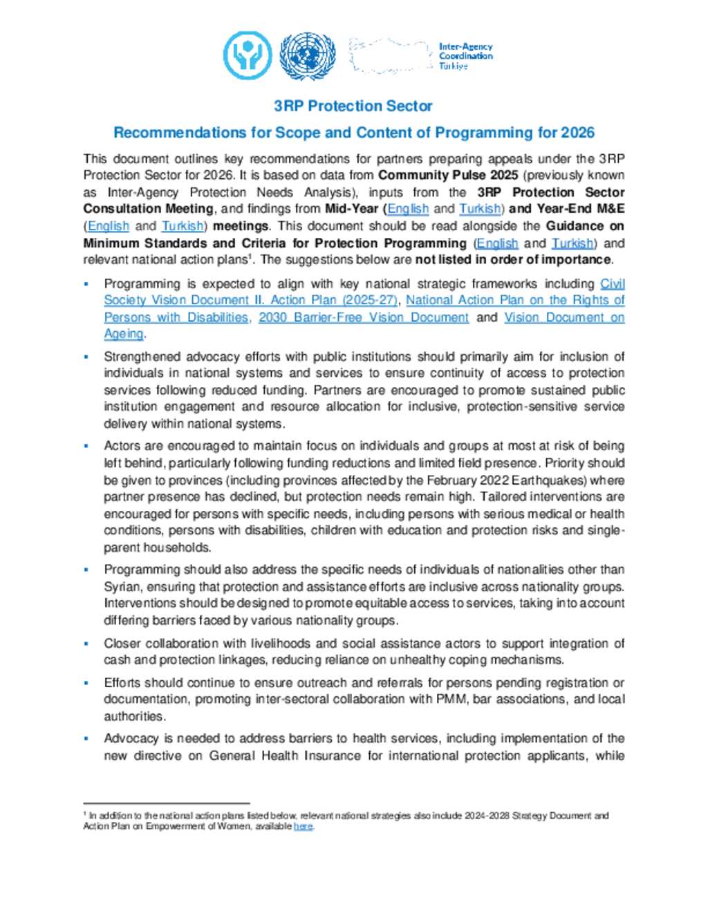 Türkiye: Recommendations for Scope and Content of Programming for 2026