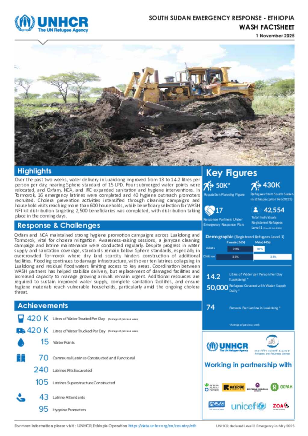 UNHCR Ethiopia | Thematic Factsheet WASH | November 2025