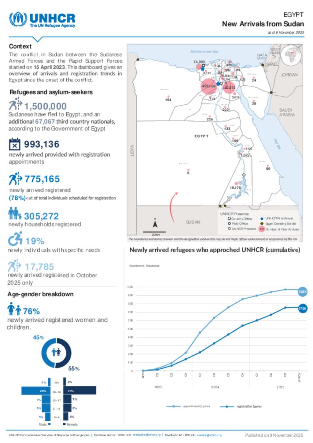Egypt: New Arrivals from Sudan as of 6 November 2025