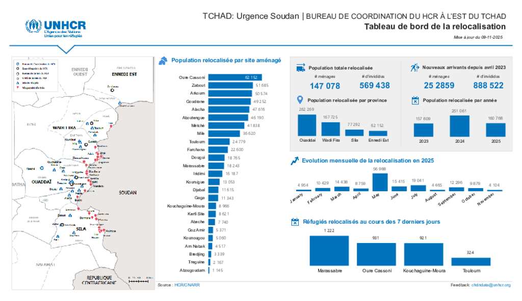 UNHCR TCHAD| Tableau de bord de la relocalisation(09 Nov. 2025)