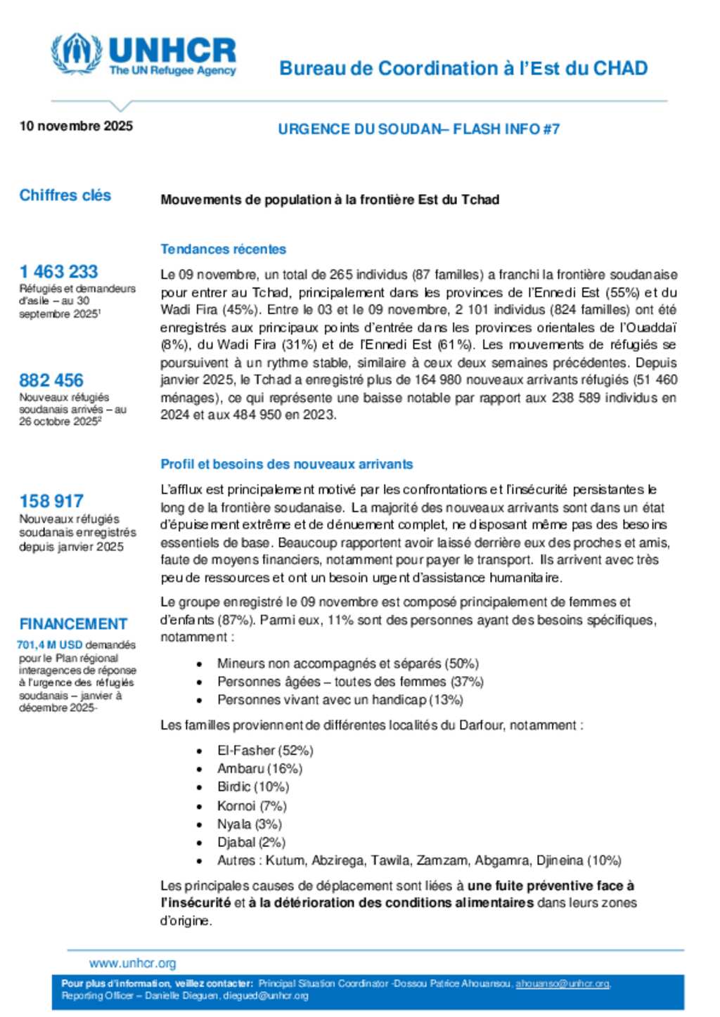 Flash Update #25 Nouvel afflux de réfugiés soudanais au Tchad