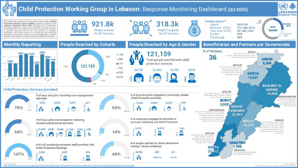 Lebanon: Inter-Agency - Child Protection Working Group - Response Monitoring Dashboard - Jan-Sept. 2025
