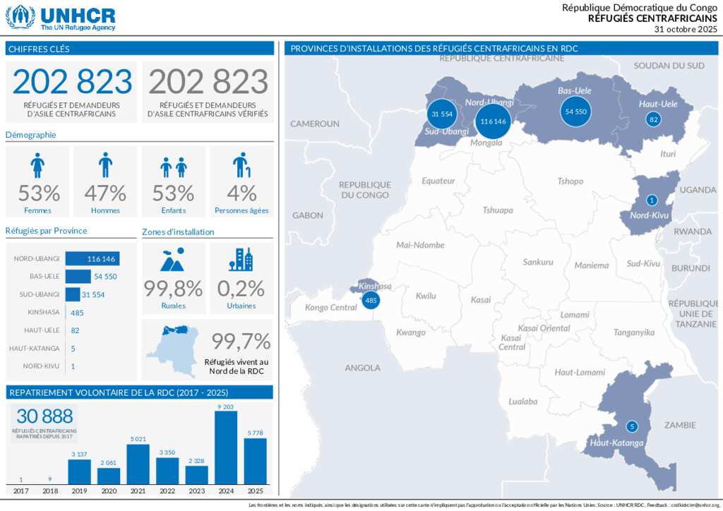 Situation des réfugiés centrafricains en RDC au 31 octobre 2025