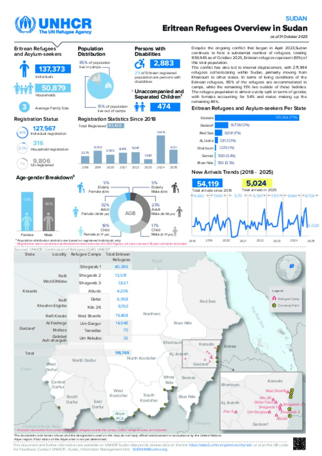 UNHCR Sudan - Eritrean Refugees in Sudan Dashboard as of 31 October 2025