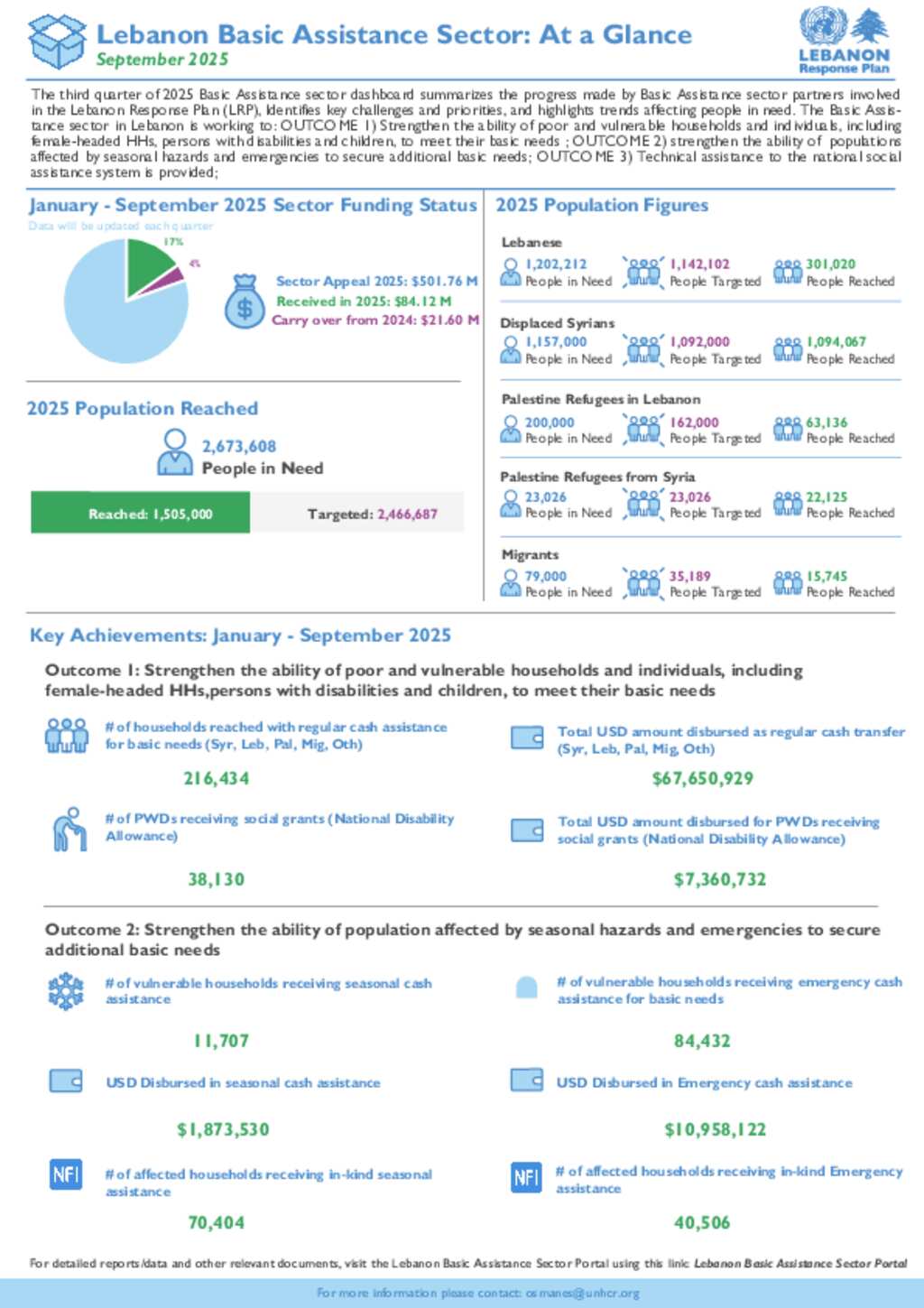 Lebanon Response Plan: Basic Assistance Sector At a Glance Report - Q3 2025