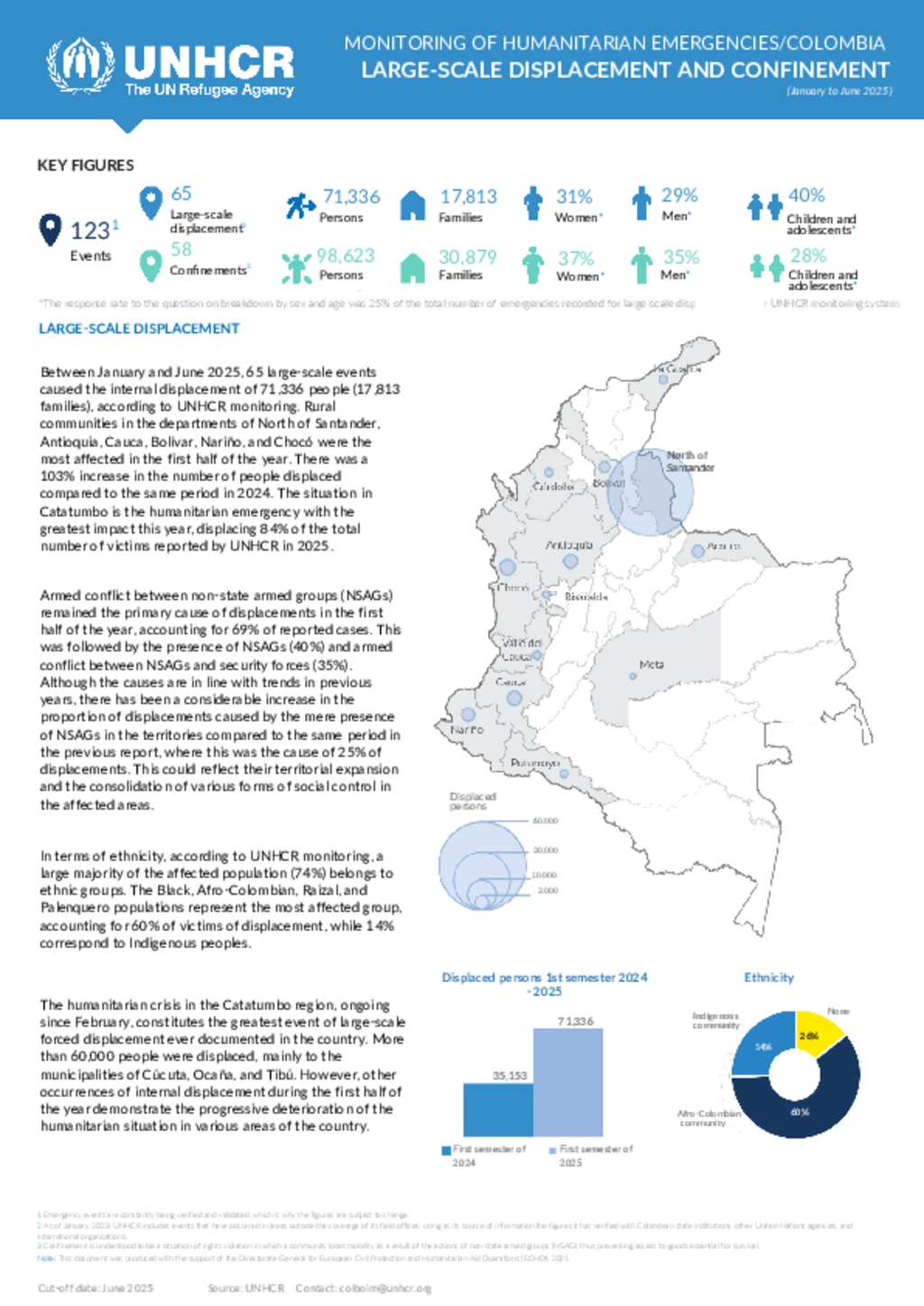 Colombia | Monitoring of humanitarian emergencies January to June 2025