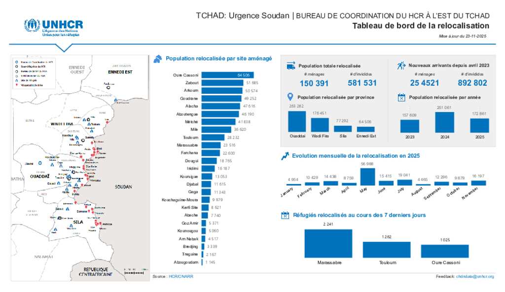 UNHCR TCHAD| Tableau de bord de la relocalisation(23 Nov. 2025)