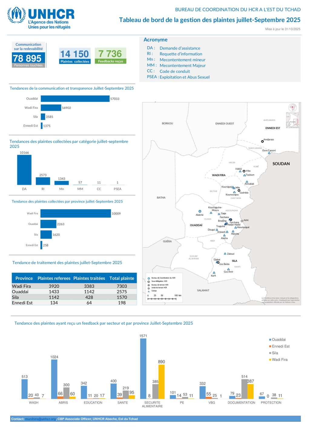 UNHCR CHAD| Gestion des plaintes(Juil-Sept 2025)