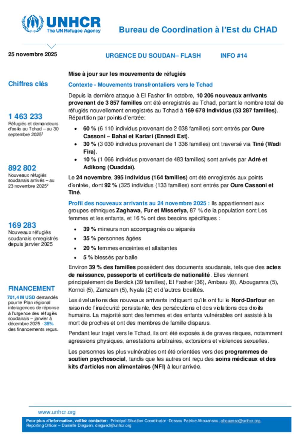 Flash Update #32 Nouvel afflux de réfugiés soudanais au Tchad
