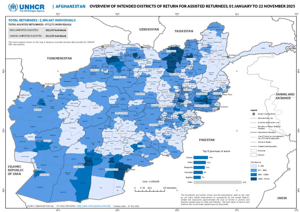 OVERVIEW OF INTENDED DISTRICTS OF RETURN FOR ASSISTED RETURNEES, 01 JANUARY TO 22 November 2025