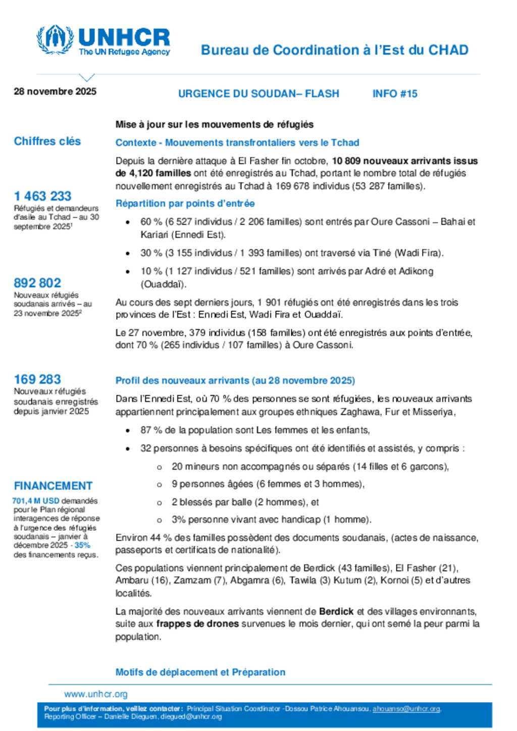 Flash Update #33 Nouvel afflux de réfugiés soudanais au Tchad