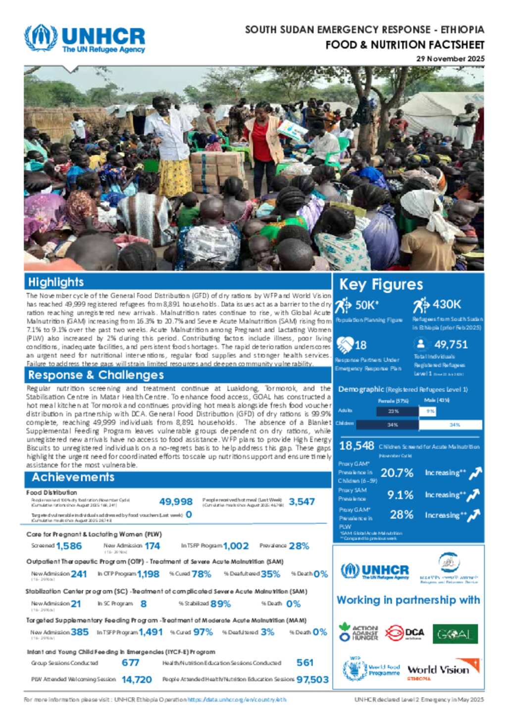 UNHCR Ethiopia Thematic Factsheet Food & Nutrition as of 29 November 2025