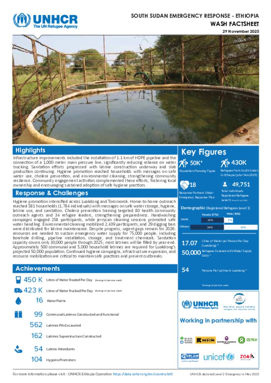 UNHCR Ethiopia | Thematic Factsheet WASH | 29 November 2025
