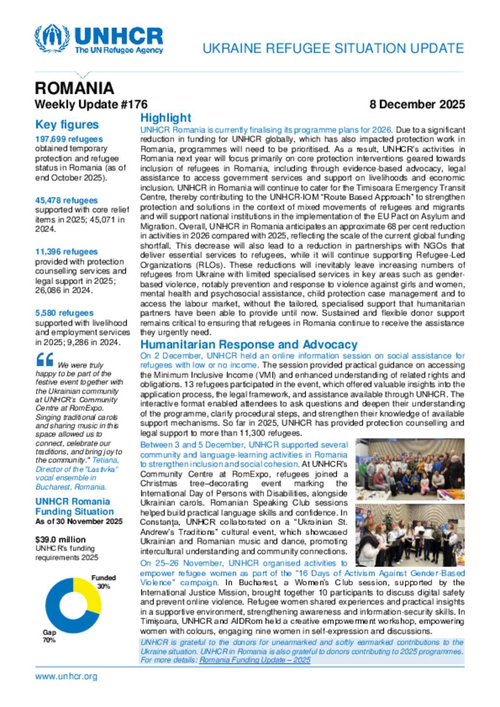 UNHCR Romania Ukraine Refugee Situation Update - 8 December 2025